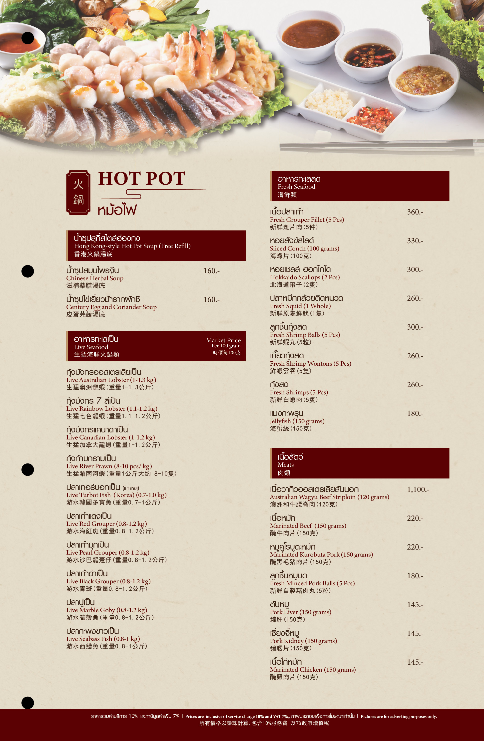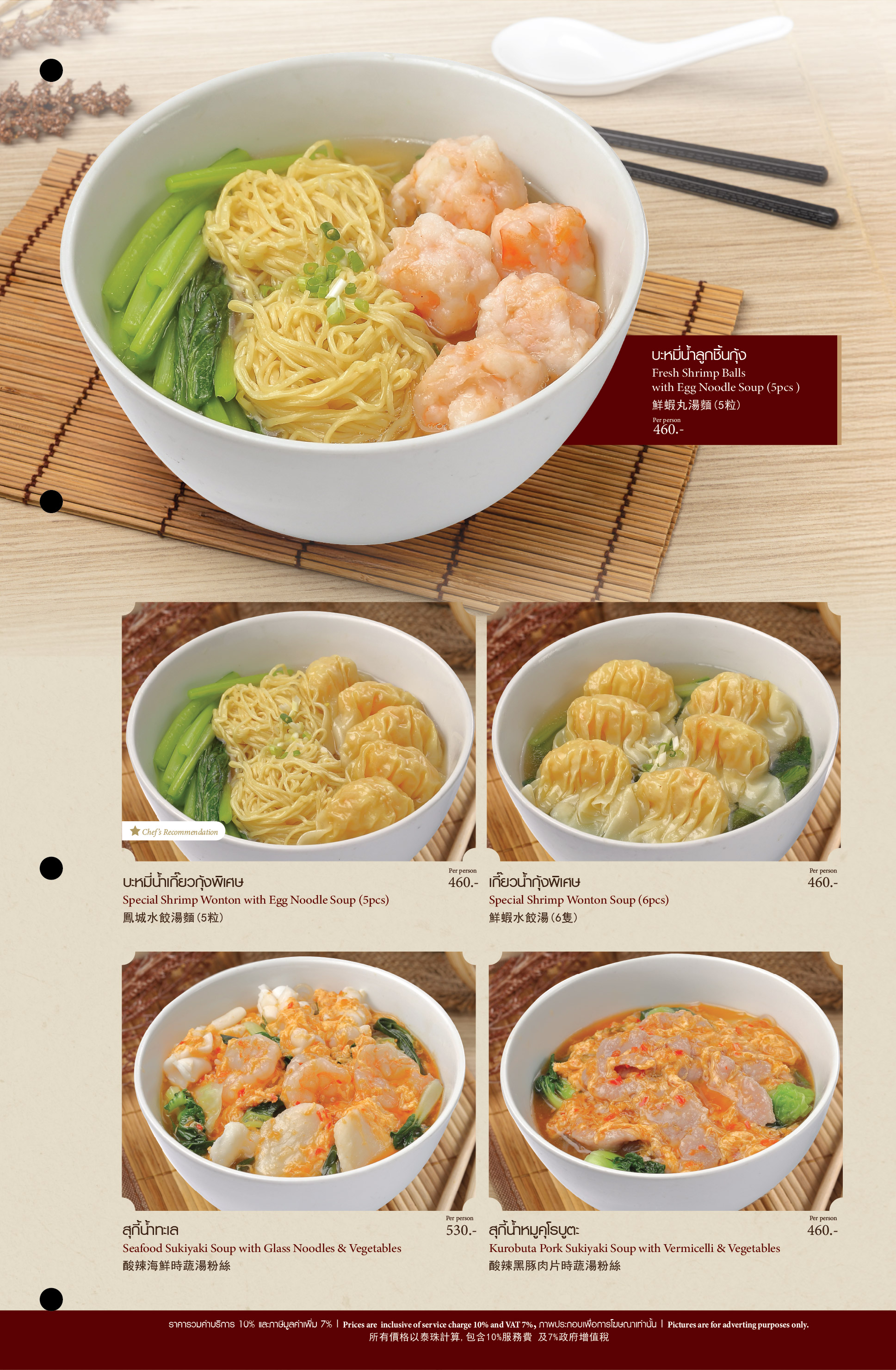 Hong Kong Suki restaurant offers Hong Kong style steaming hotpot (suki) with four choices of specially prepared soup base to suit all taste buds - Sichuan soup, Chinese herbal soup, preserved egg with Chinese parsley soup and spicy Tom Yum soup. Slurps your way through the deliciousness of authentic Hong Kong style sukiyaki coupled with the freshest ingredients ranging from Hong Kong style homemade meatballs, sliced pork, beef, to seafood and vegetables. Be spoiled for choice by a mouthwatering array of original Hong Kong a-la-carte menu items such as BBQ pork with BBQ pork belly, roasted duck, noodle dishes and freshly made dim sum. Every dish is delicately prepared by skilled Hong Kong and Thai chefs to ensure quality and deliciousness.
